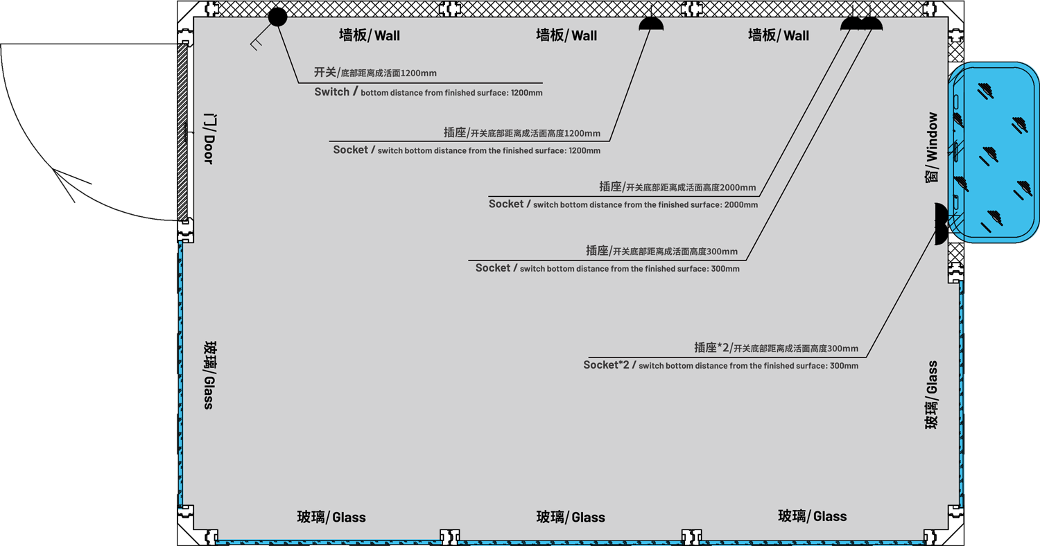 The walls, interior ceiling, and floor of the ETONG Space Capsule homes utilize 80mm-thick aluminum structural modules filled with high-quality PIR/XPS insulation material. The module dimensions can be flexibly determined based on layout plans,