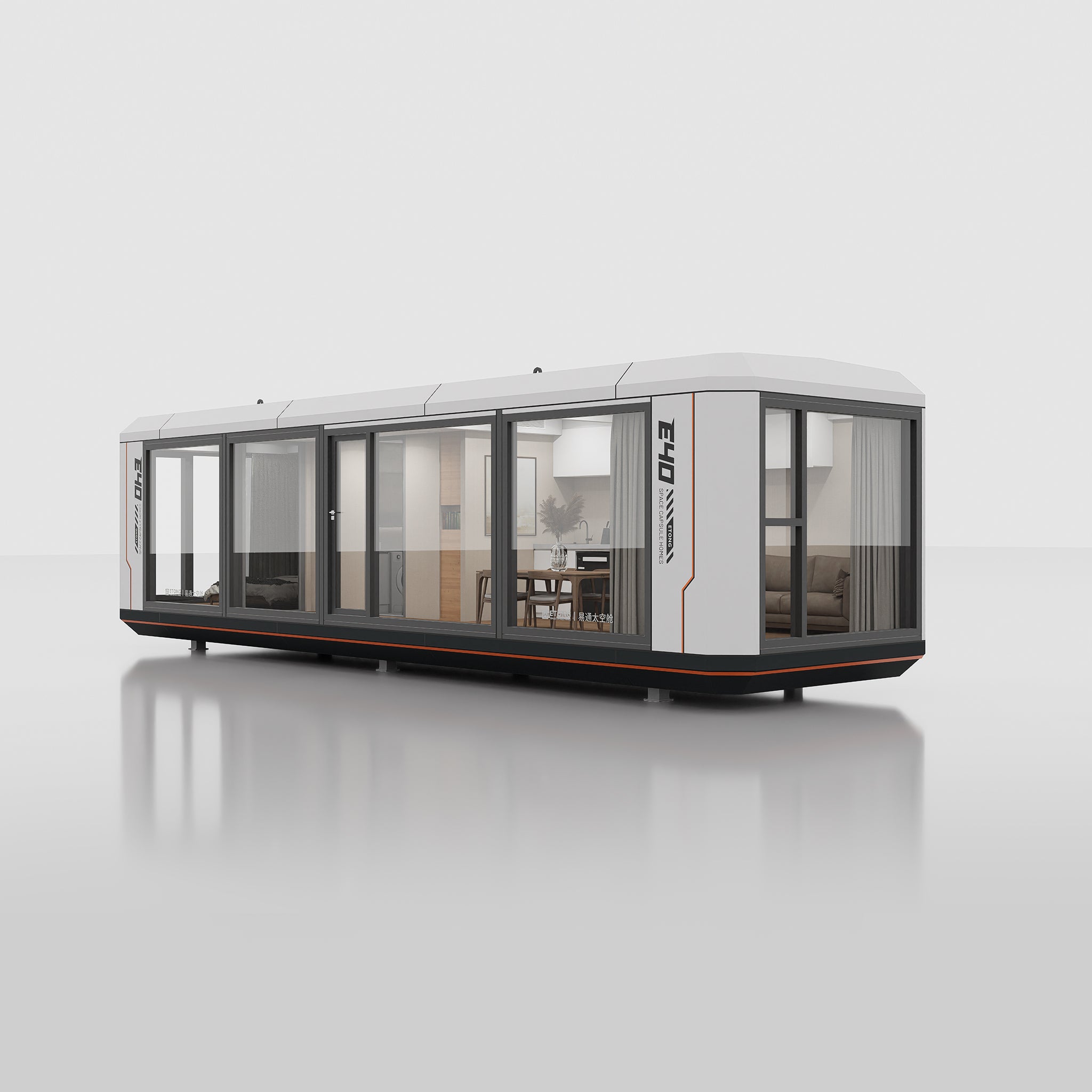 The walls, interior ceiling, and floor of the ETONG Space Capsule homes utilize 80mm-thick aluminum structural modules filled with high-quality PIR/XPS insulation material. The module dimensions can be flexibly determined based on layout plans,