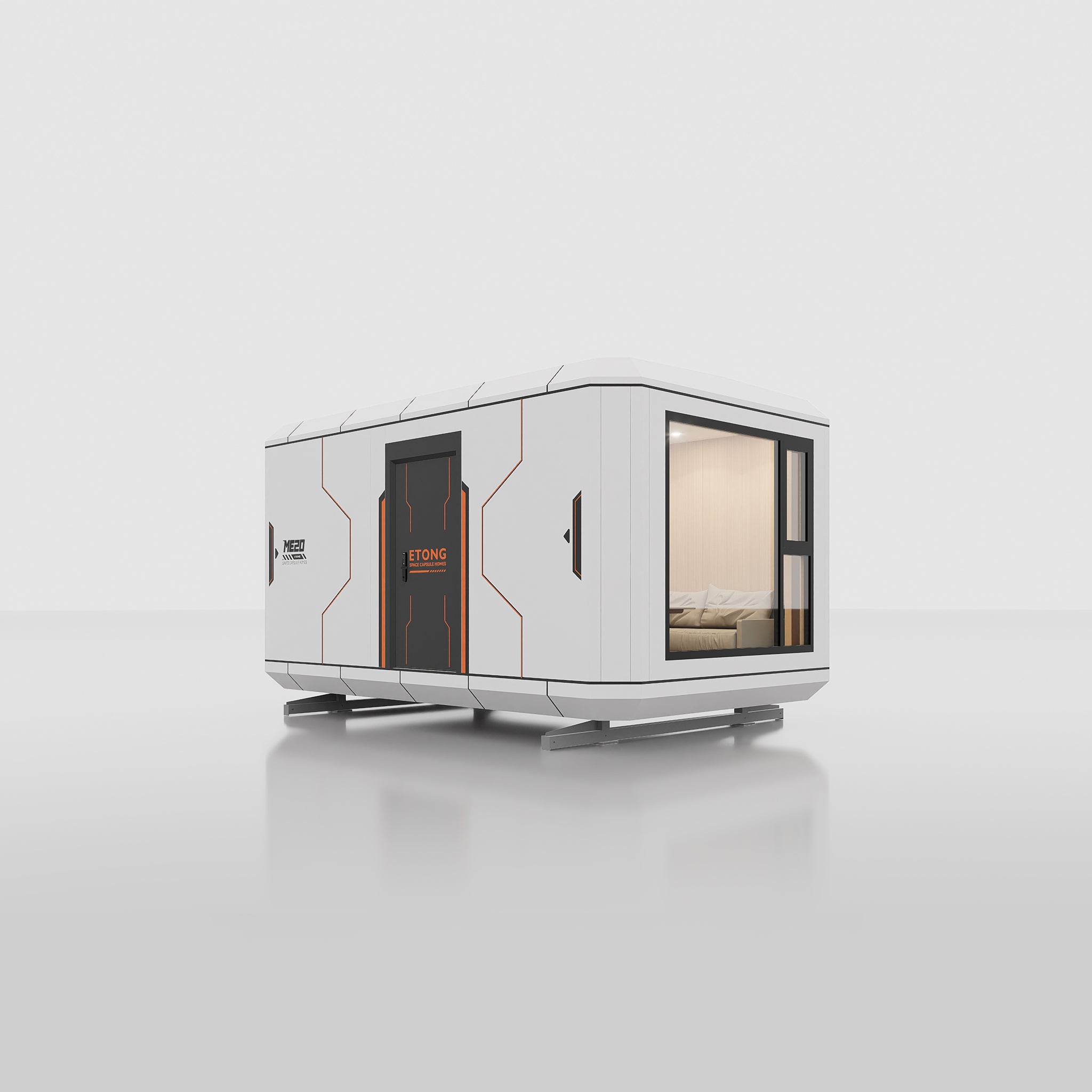 The walls, interior ceiling, and floor of the ETONG Space Capsule homes utilize 80mm-thick aluminum structural modules filled with high-quality PIR/XPS insulation material. The module dimensions can be flexibly determined based on layout plans,