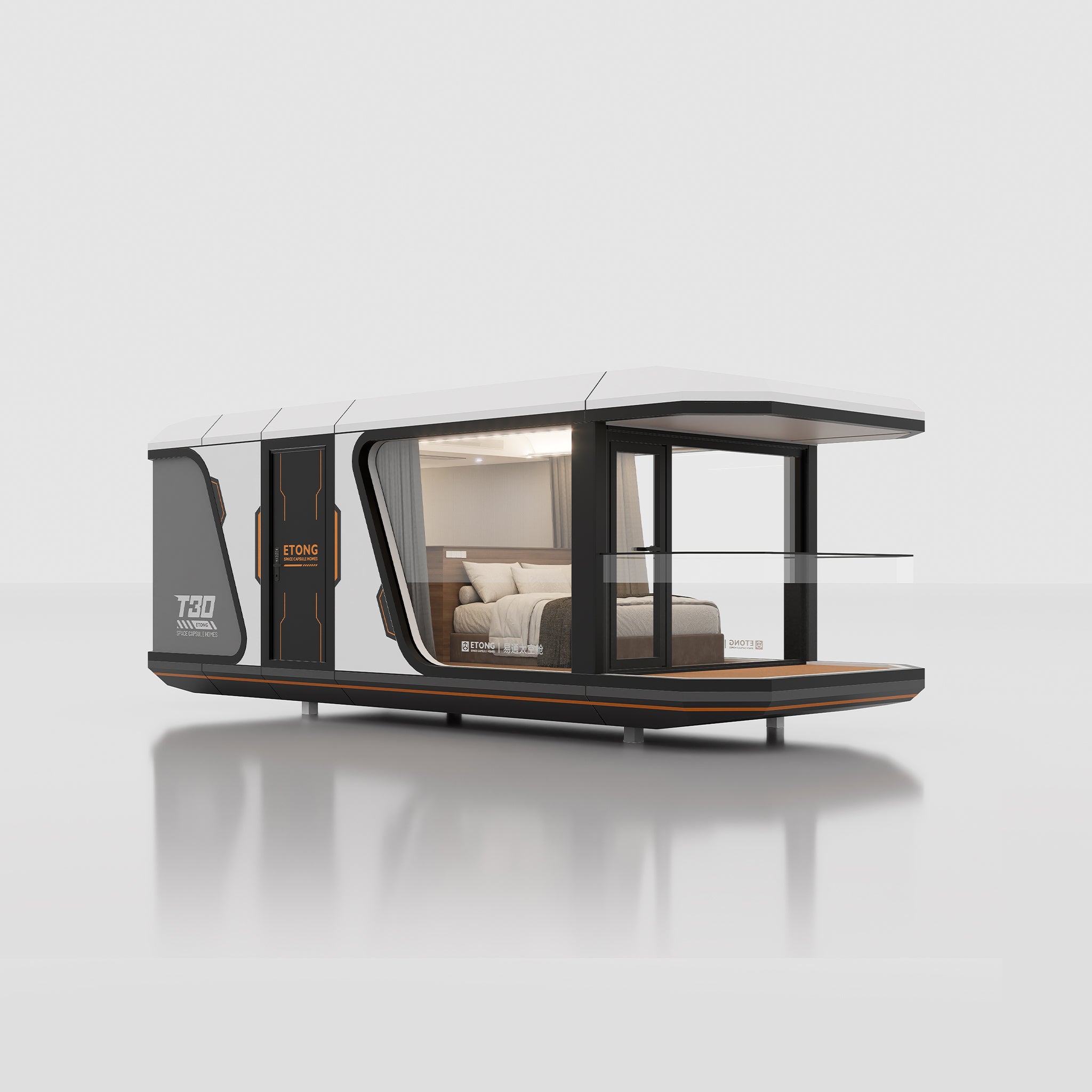 The walls, interior ceiling, and floor of the ETONG Space Capsule homes utilize 80mm-thick aluminum structural modules filled with high-quality PIR/XPS insulation material. The module dimensions can be flexibly determined based on layout plans, while being designed for easy transportation, assembly, and handling, effectively reducing construction and transportation costs.