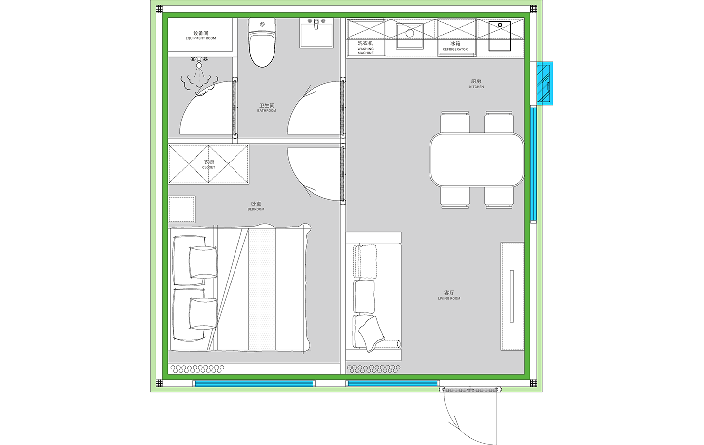 The walls, interior ceiling, and floor of the ETONG Space Capsule homes utilize 80mm-thick aluminum structural modules filled with high-quality PIR/XPS insulation material. The module dimensions can be flexibly determined based on layout plans, while being designed for easy transportation, assembly, and handling, effectively reducing construction and transportation costs.