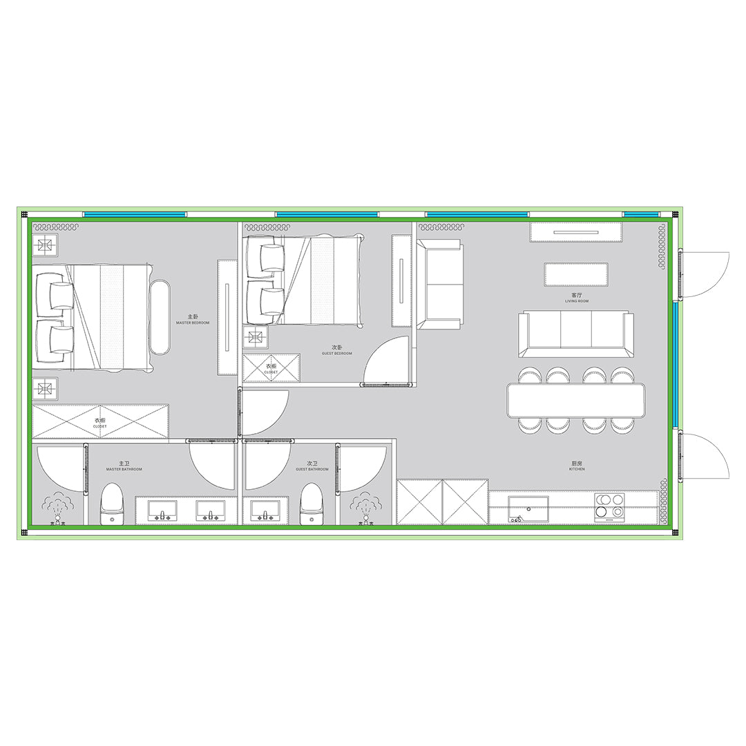 The walls, interior ceiling, and floor of the ETONG Space Capsule homes utilize 80mm-thick aluminum structural modules filled with high-quality PIR/XPS insulation material. The module dimensions can be flexibly determined based on layout plans, while being designed for easy transportation, assembly, and handling, effectively reducing construction and transportation costs.