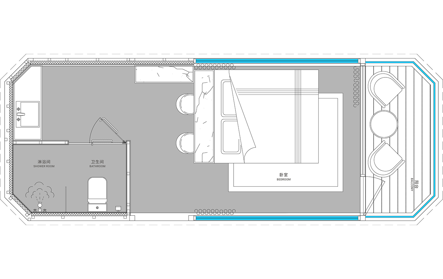The walls, interior ceiling, and floor of the ETONG Space Capsule homes utilize 80mm-thick aluminum structural modules filled with high-quality PIR/XPS insulation material. The module dimensions can be flexibly determined based on layout plans, while being designed for easy transportation, assembly, and handling, effectively reducing construction and transportation costs.