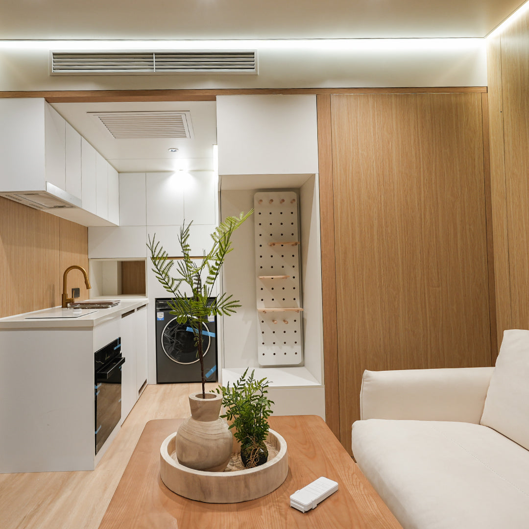 No foundation required, adaptable to all terrains, eco-friendly with zero environmental damage and no construction waste;Produced within 40 days in-factory, pre-assembled and pre-disassembled, transported integrally, installed on-site in 2 hours, no secondary renovation needed;Reduced construction cycle, equipped with smart home appliance control system and patented exterior design. Panoramic views with inherent market appeal.