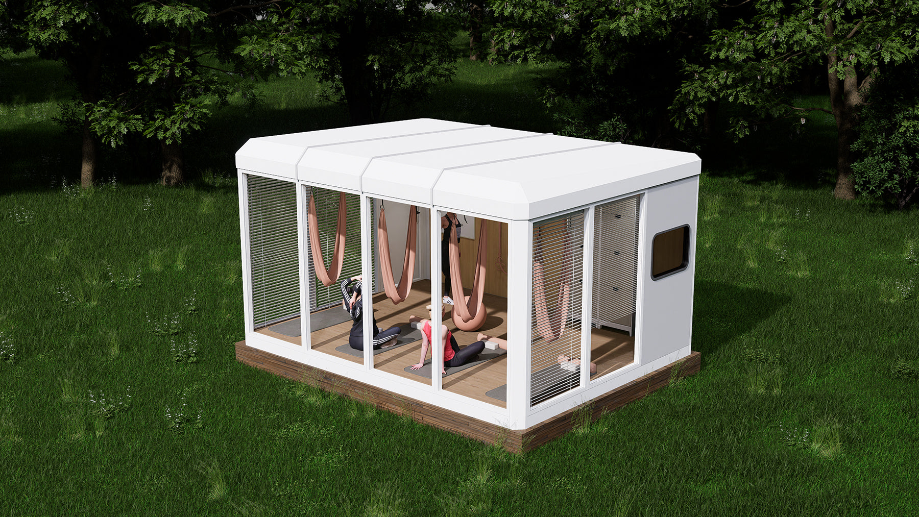 • Window Module — Outward-opening tilt-and-turn suspension window, includes insect screen and sunshade curtain